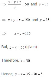 The mean and median of the data x,y,z are 50 and 35 respectively, where