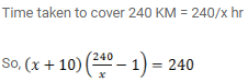 A train travels 240KM at a uniform speed. If the speed had been 10 KM/H more. It would have taken 1 hrs lesser for the same journey in the same route. What is the speed of the train near to?