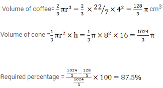 A hemispherical cup of radius 4 cm is filled to the brim with coffee. The coffee is then poured into a vertical cone of radius 8 cm and height 16 cm. the percentage of the volume of the cone that remains empty is :