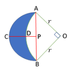 AOB is a quadrant sector of radius r cut from a circle of center O. A semicircle of center P is drawn outside of quadrant taking AB as diameter. What is the difference between area of whole geometry and that of quadrant?