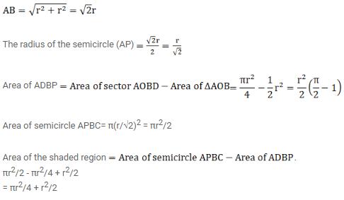 The shaded region will represent the difference between the areas of whole geometry and that of sector AOBD. AOB is quadrant circle its mean triangle is a right angle triangle