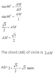 A chord subtends an angle 120° at the centre of a unit circle. What is the length of the chord?