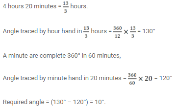 Find the angle between the minute hand and hour hand of a clock when the time is 4.20