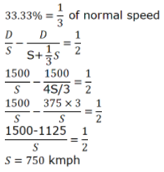A plane left half an hours later than the scheduled time and in order to each its destination 1500 kilometre away in time, it had to increase its speed by 33.33% over its usual speed. Find its increased speed.