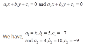 Given equations are, kx+5y-7 =0 and 4x +10y-9=0