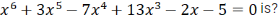First, we write the polynomial in its standard form as f(x) = x6 + 3x5 - 7x4 + 13 +0x2 - 2x -5