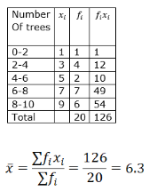 Direction: The following table shows the number of trees planted by 20 different household in a locality.
