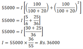 A loan of Rs. 55000 is to be paid back in two equal annual installments. Find the value of each installment, if the rate of interest is 20% compounded annually.