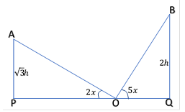 Let the heights of towers are √3h and 2h, then their respective angle of elevation from O are 5x and 2x. Now,