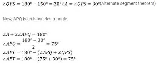 In the given figure PQRS is a parallelogram with ∠PQR = 150o, APQ is an isosceles triangle and TS is a tangent at P. Find ∠APT?