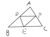 From the property, we can say that DE is parallel to AC. Similarly, EF is parallel to AB and DF is parallel to BC.